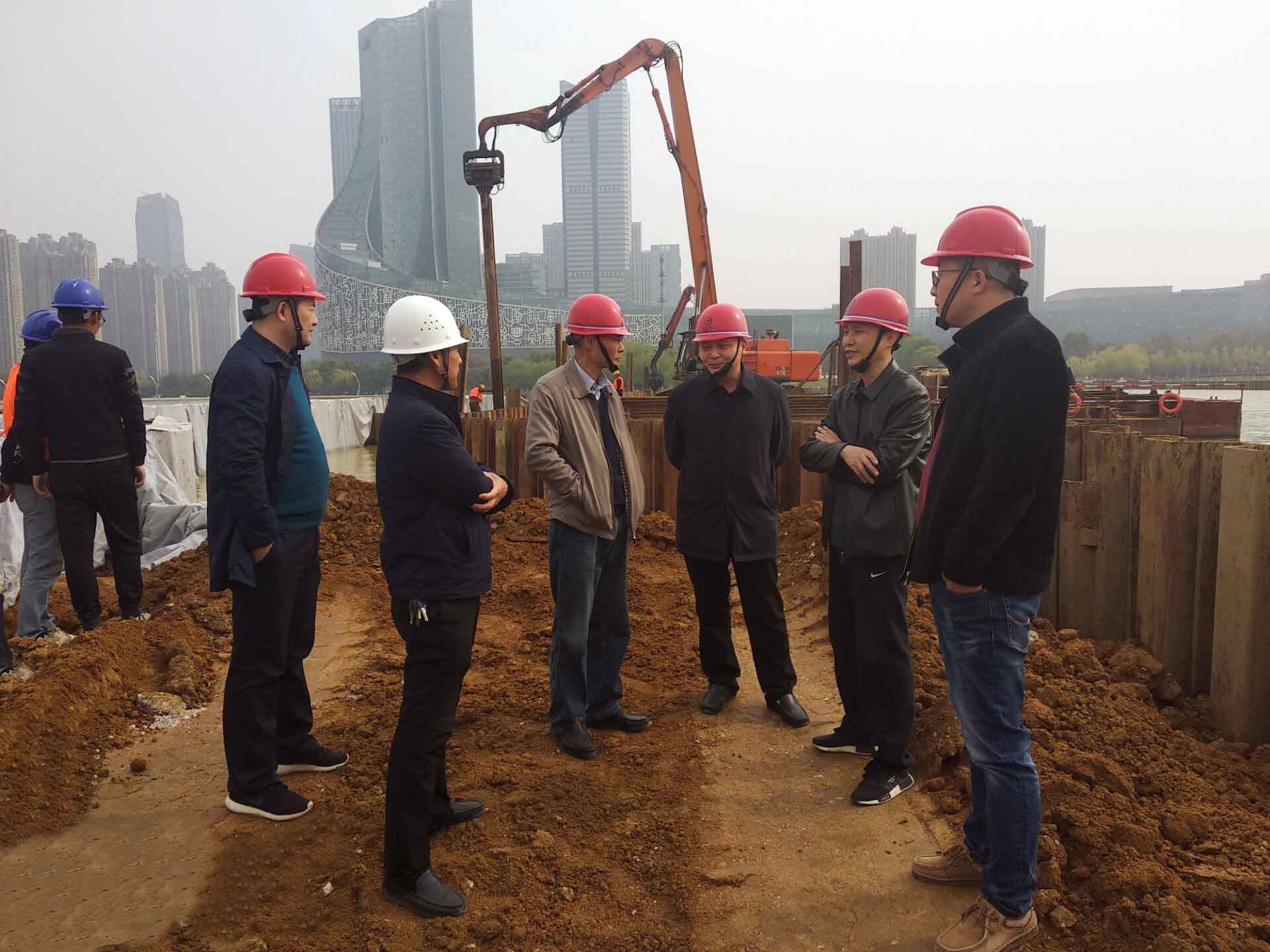 陆勤航总经理深入项目现场,对施工进度、质量、安全等进行了详细了解,并听取了钢筋笼制作和安装、钢板桩围堰和钻孔灌注桩施工、泵站基坑开挖等情况的汇报。在全面了解项目各项工作后,陆勤航总经理要求,一是要及时统筹协调项目各方面工作,推动现场施工井然有序开展。二是要要把握好施工重点难点,充分保障施工进度。三是要严格落实各项制度,加强现场管理,确保项目施工及人员安全,扎实做好安全文明施工及环保措施。