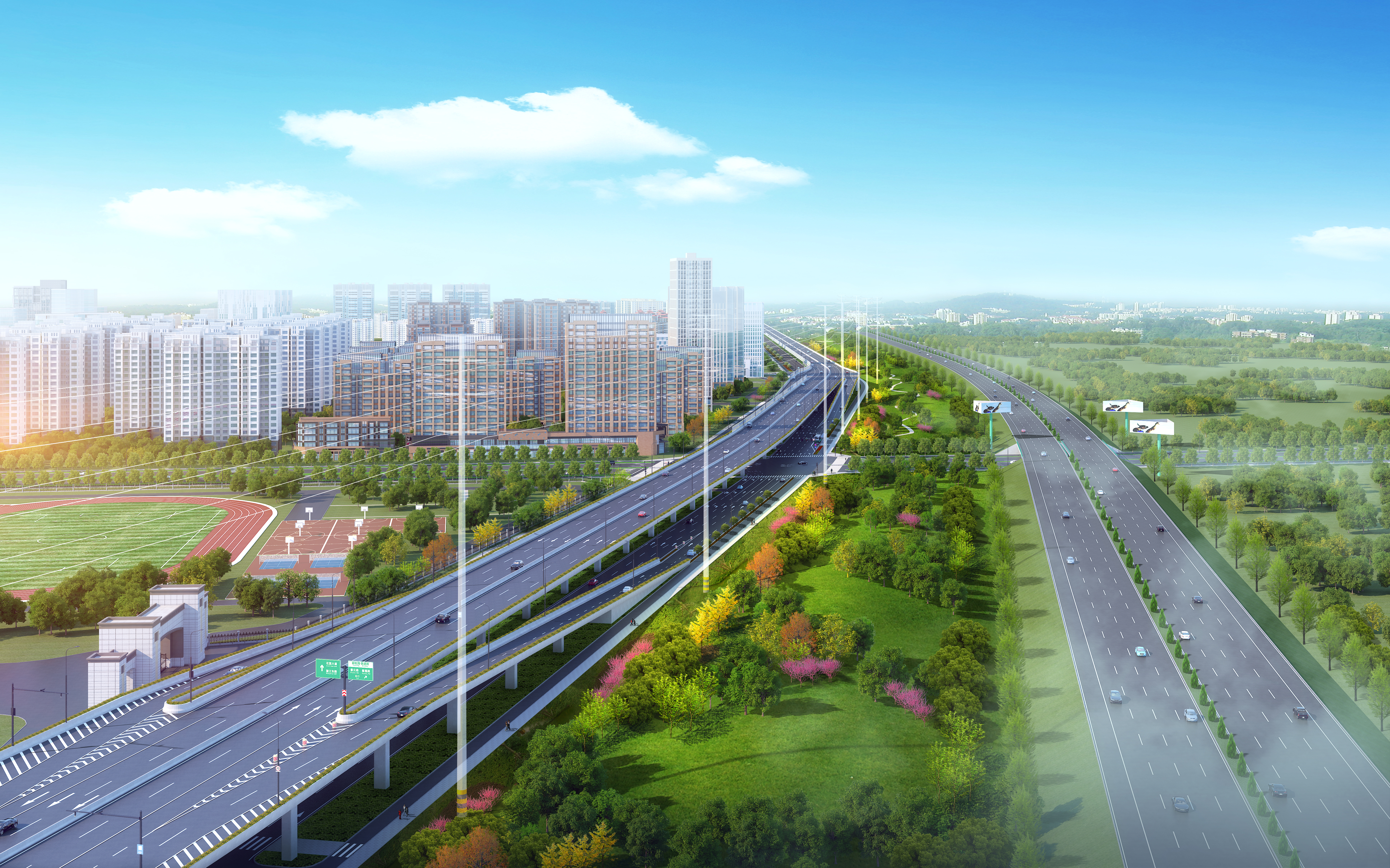 本次通车放行后,花园大道至紫云路节点全长4km双向六车道快速路将实现3分钟直达,打通了经开区向南连接滨湖新的快速通道,将直接惠及沿线国际花都、清华启迪水木园等近万户居民,以及合肥医药健康产业园、智能科技园、启迪科技城等众多产业园区和168玫瑰园校区、清华附中等多所学校。始信路互通4公里高架及地面段的放行将促进安徽大众、蔚来汽车等多个产业园区数千名员工通勤效率显著提升,并确保临湖社区如园、意园等市民通行更为便利。